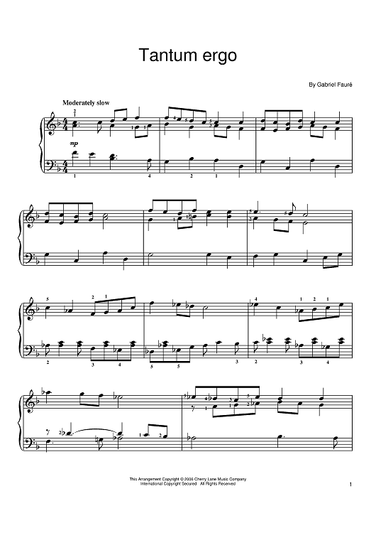 Digital Sheet Music for Tantum Ergo by Gabriel Fauré scored for Easy Piano; id:388661