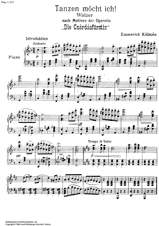 Digital Sheet Music for Tanzen möcht' ich! from Die Csardasfürstin by , Emmerich Kalman scored for Piano Solo; id:348329