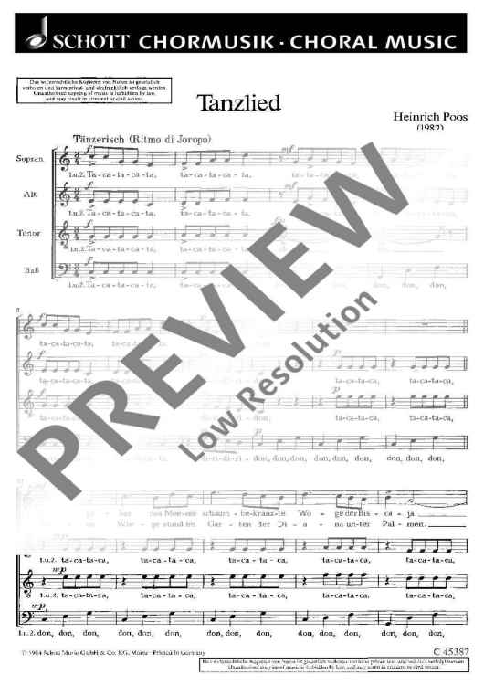 Digital Sheet Music for Tanzlied - Choral Score by Heinrich Poos scored for Mixed Choir (satb); id:471778
