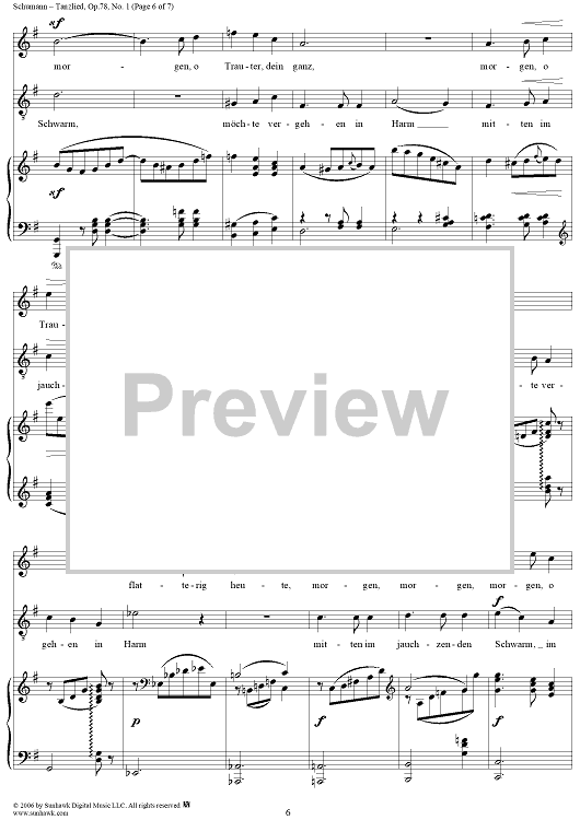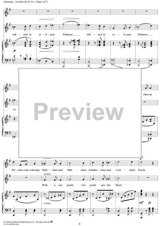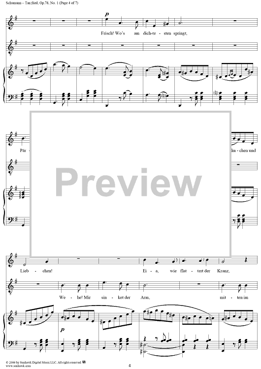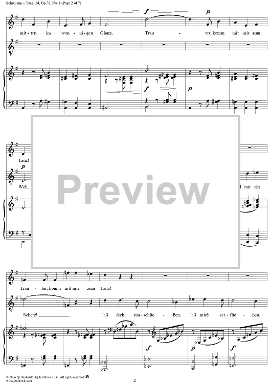 Digital Sheet Music for Tanzlied, Op. 78, No. 1 by Friedrich Rückert, Robert Schumann scored for Voice/Piano; id:318631