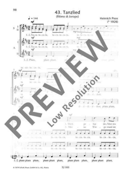 Digital Sheet Music for Tanzlied by Wilfried Fischer, Heinrich Poos, Hans Guenther Bastian scored for Female Choir (ssaa); id:481924