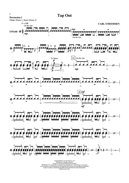 "Tap Out - Percussion 1" Sheet Music by Carl Strommen