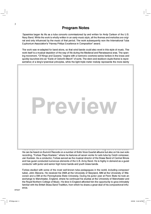 Digital Sheet Music for Tapestries - Score by Mike Forbes scored for Concert Band; id:407636