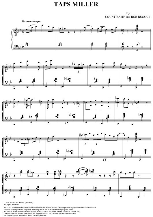 Digital Sheet Music for Taps Miller by Count Basie, Bob Russell scored for Piano Solo; id:276966