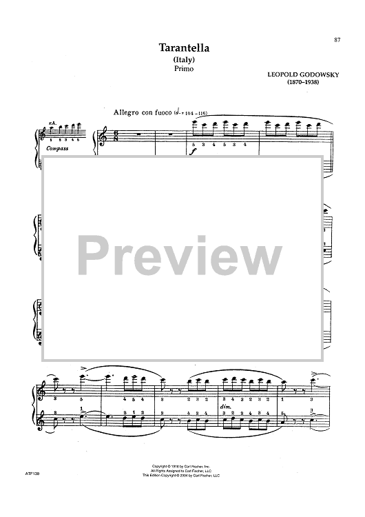 Digital Sheet Music for Tarantella (Italy) - from Seven Modern Dances by Leopold Godowsky scored for 2 Pianos, 4 Hands; id:439588