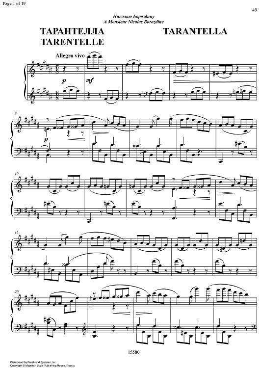 "Tarentella" Sheet Music by Mily Alexeyevich Balakirev