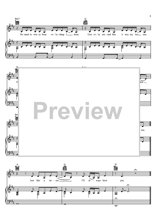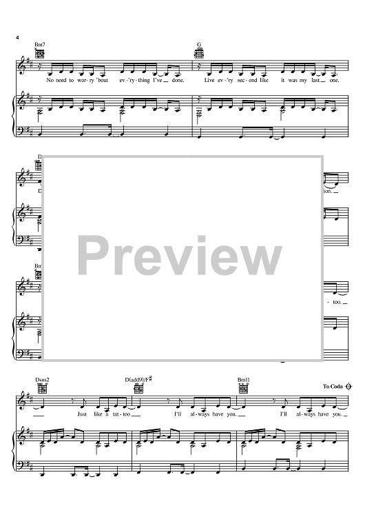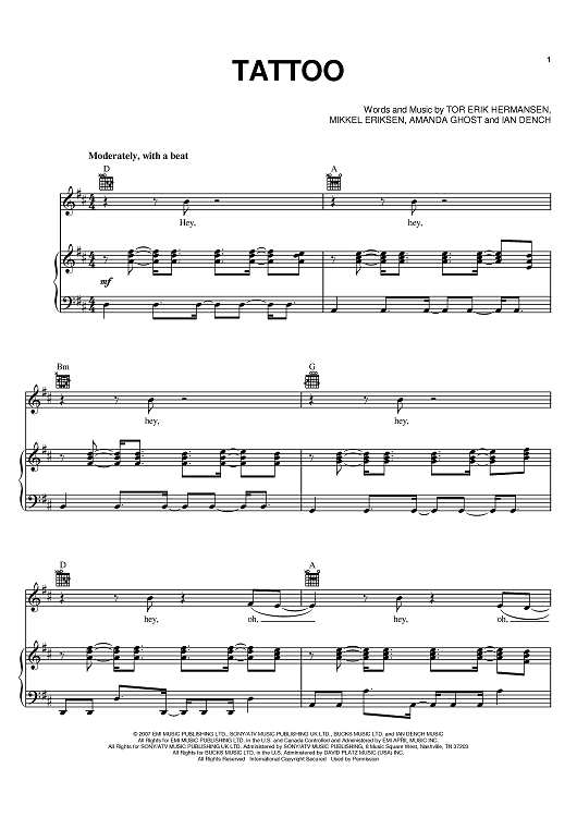 Digital Sheet Music for Tattoo by Jordin Sparks, Tor Erik Hermansen, Amanda Ghost, Ian Dench, Mikkel Eriksen scored for Piano/Vocal/Chords; id:402378