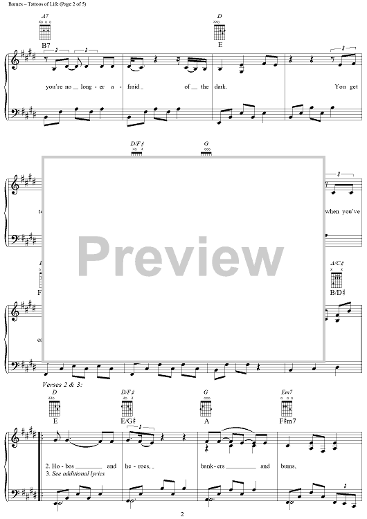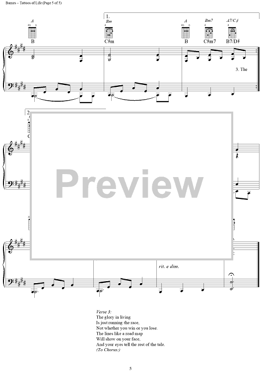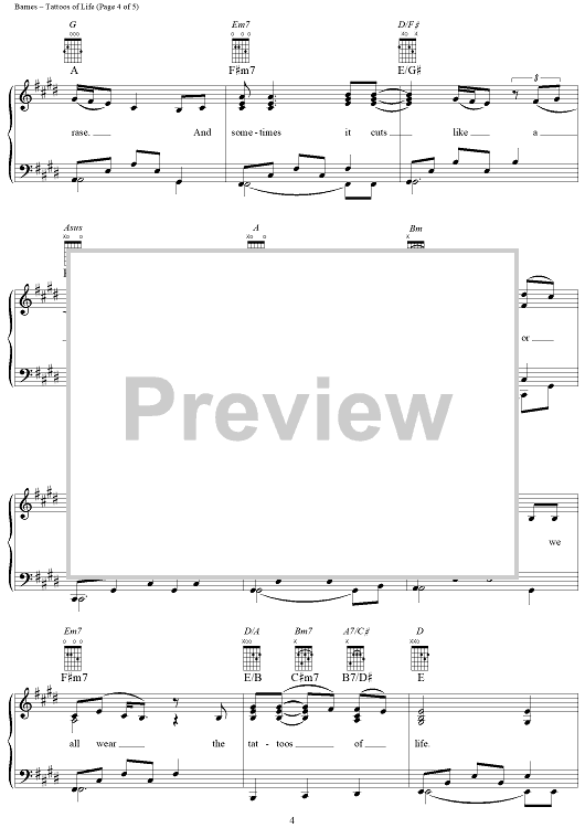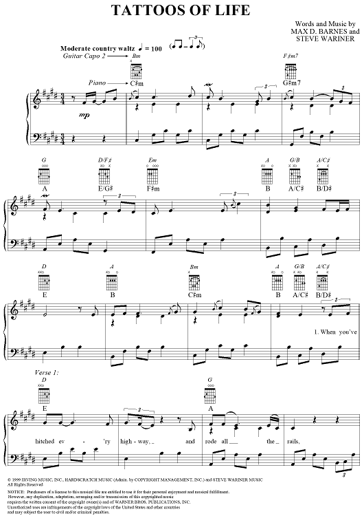 Digital Sheet Music for Tattoos of Life by Steve Wariner, Max D. Barnes scored for Piano/Vocal/Chords; id:204034