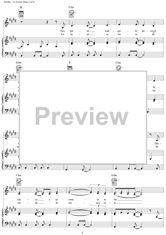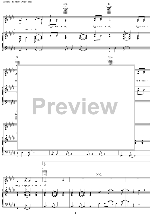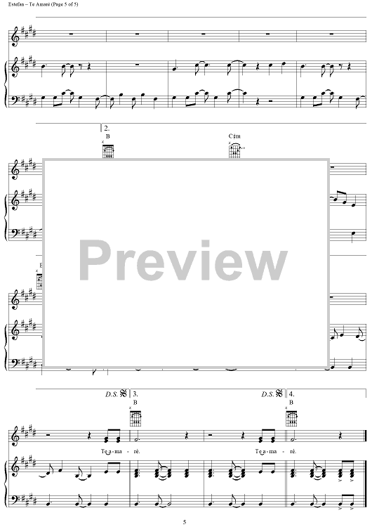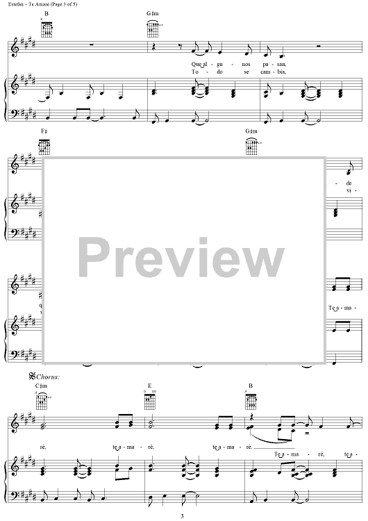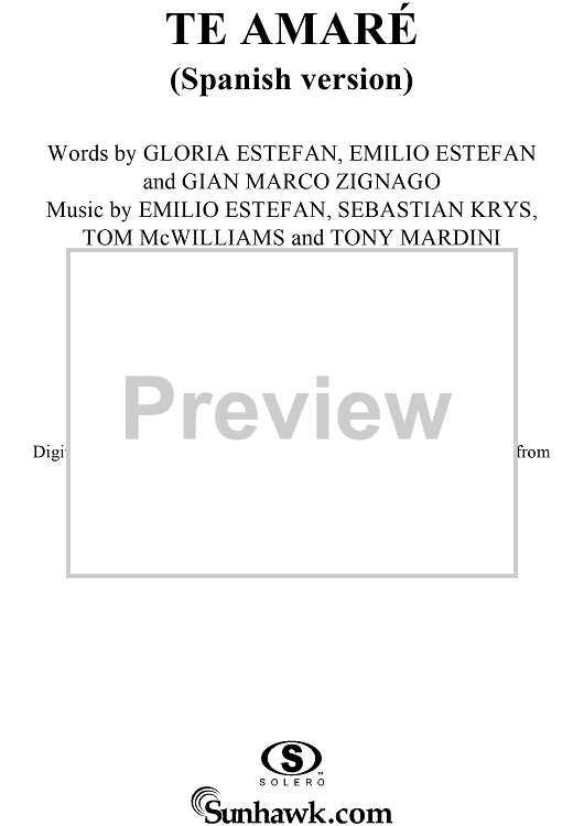 Digital Sheet Music for Te Amaré (Spanish version) by Gloria Estefan, Emilio Estefan Jr., Sebastian Krys, Gian Marco Zignago, Tony Mardini, Tom McWilliams scored for Piano/Vocal/Chords; id:305295