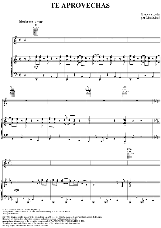 Digital Sheet Music for Te Aprovechas by Grupo Limite, Massias scored for Piano/Vocal/Chords; id:240932