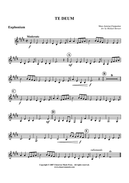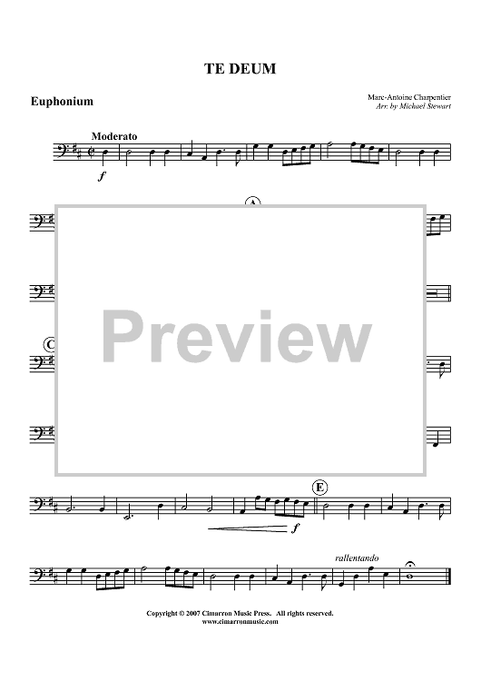 Digital Sheet Music for Te Deum - Euphonium by , Michael Stewart, Marc-Antoine Charpentier scored for Brass Ensemble; id:366471