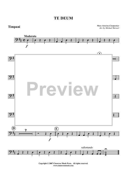 Digital Sheet Music for Te Deum - Timpani by , Michael Stewart, Marc-Antoine Charpentier scored for Brass Ensemble; id:366474