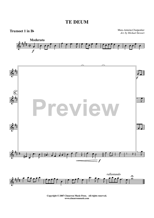 Digital Sheet Music for Te Deum - Trumpet 1 in B-flat by , Michael Stewart, Marc-Antoine Charpentier scored for Brass Ensemble; id:366478