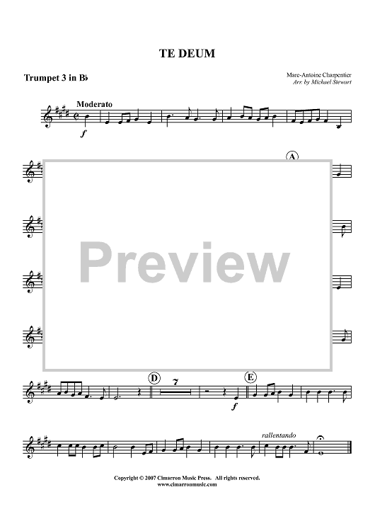 Digital Sheet Music for Te Deum - Trumpet 3 in B-flat by , Michael Stewart, Marc-Antoine Charpentier scored for Brass Ensemble; id:366480