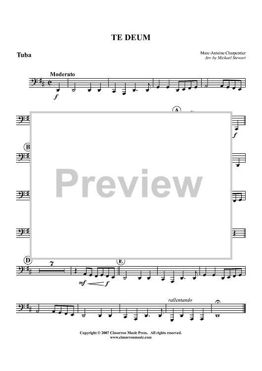 Digital Sheet Music for Te Deum - Tuba by , Michael Stewart, Marc-Antoine Charpentier scored for Brass Ensemble; id:366481