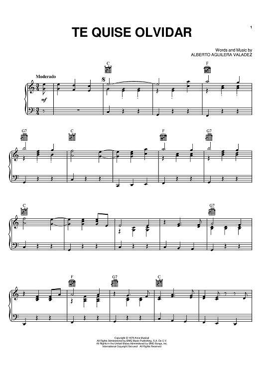 Digital Sheet Music for Te Quise Olvidar by Alberto Aguilera Valadez scored for Piano/Vocal/Chords; id:381997