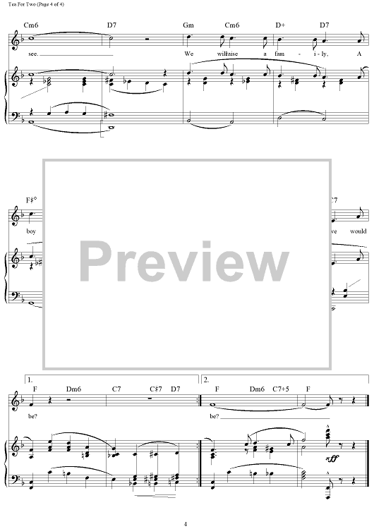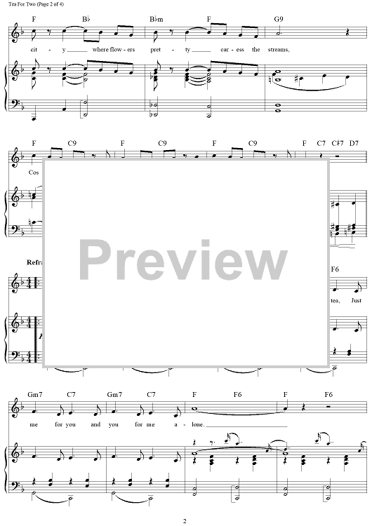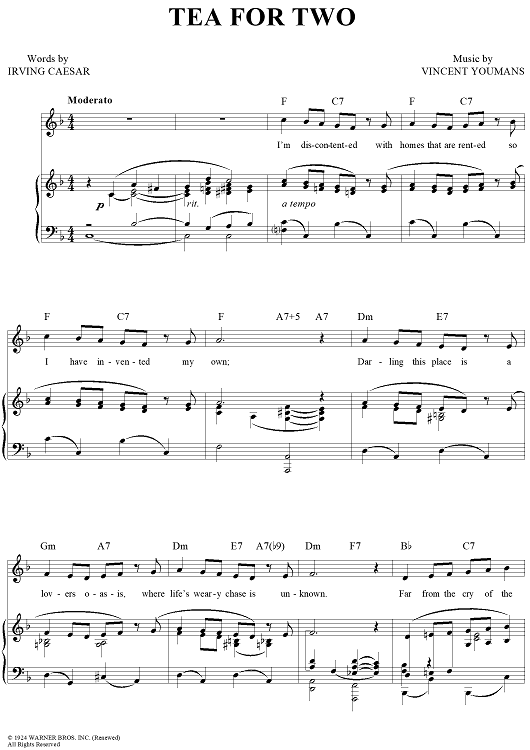 Digital Sheet Music for Tea For Two by Irving Caesar, Vincent Youmans, Doris Day, Gordon MacRae, Marion Harris scored for Piano/Vocal/Chords; id:112179