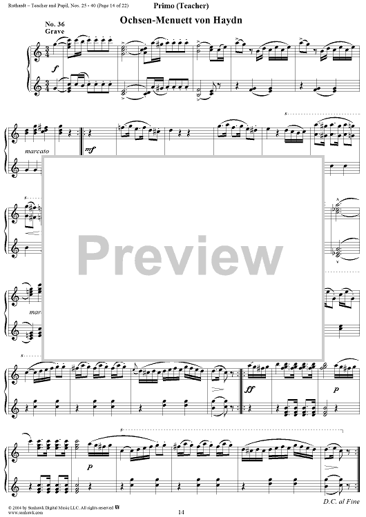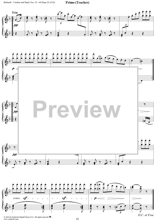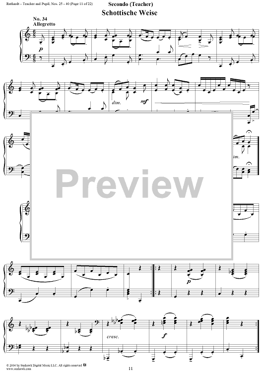 Digital Sheet Music for Teacher and Pupil, Nos. 25 - 40 by Adolf Ruthardt scored for 1 Piano, 4 Hands; id:295991
