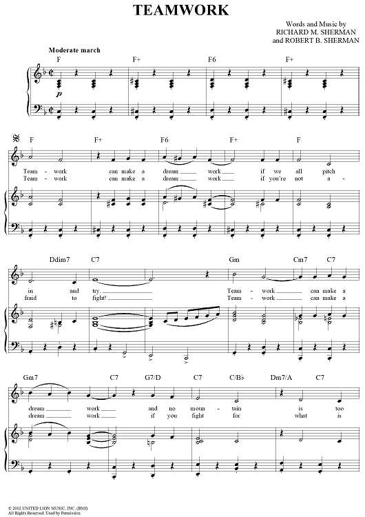 "Teamwork" Sheet Music by Richard M. Sherman
