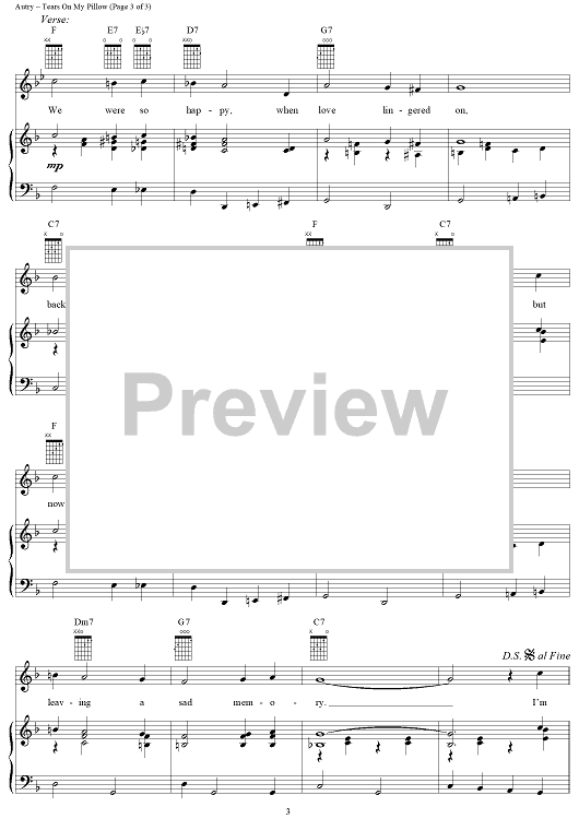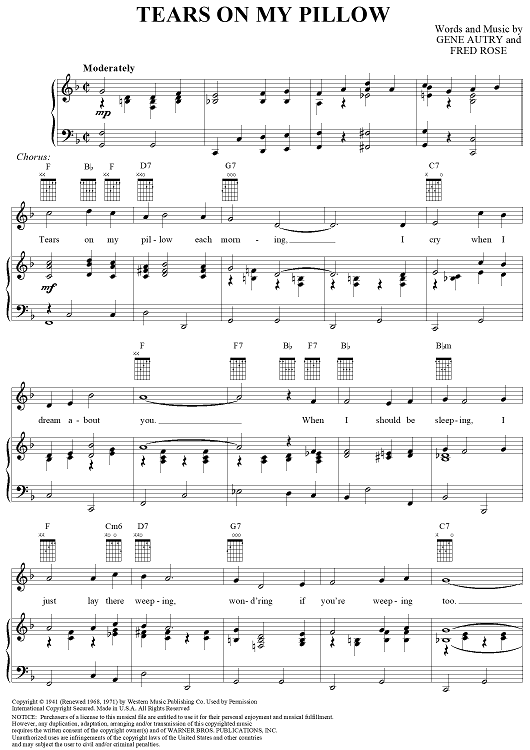 Digital Sheet Music for Tears On My Pillow by Fred Rose, Gene Autry scored for Piano/Vocal/Chords; id:193948
