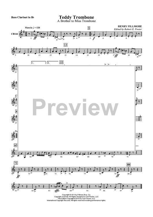 "Teddy Trombone - A Brother to Miss Trombone - Bass Clarinet in Bb" Sheet Music by Henry Fillmore
