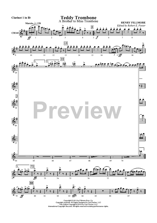 Digital Sheet Music for Teddy Trombone - A Brother to Miss Trombone - Clarinet 1 in Bb by , Henry Fillmore, Robert E. Foster scored for Concert Band; id:435442