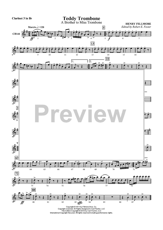 Digital Sheet Music for Teddy Trombone - A Brother to Miss Trombone - Clarinet 3 in Bb by , Henry Fillmore, Robert E. Foster scored for Concert Band; id:435444