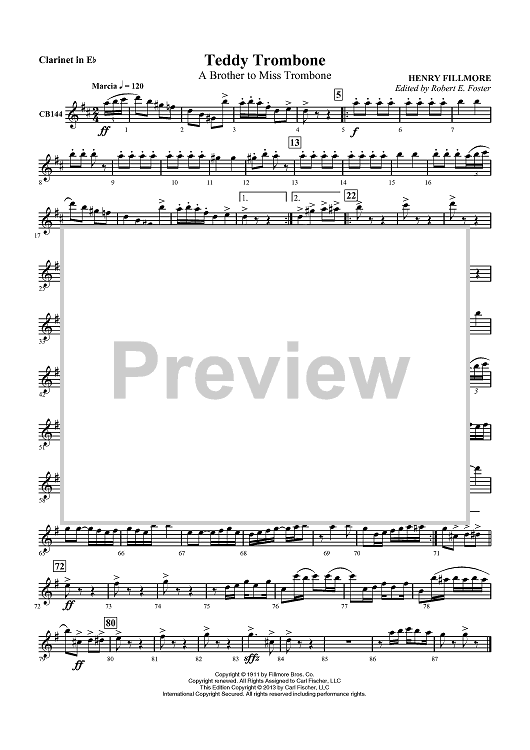 Digital Sheet Music for Teddy Trombone - A Brother to Miss Trombone - Clarinet in Eb by , Henry Fillmore, Robert E. Foster scored for Concert Band; id:435441