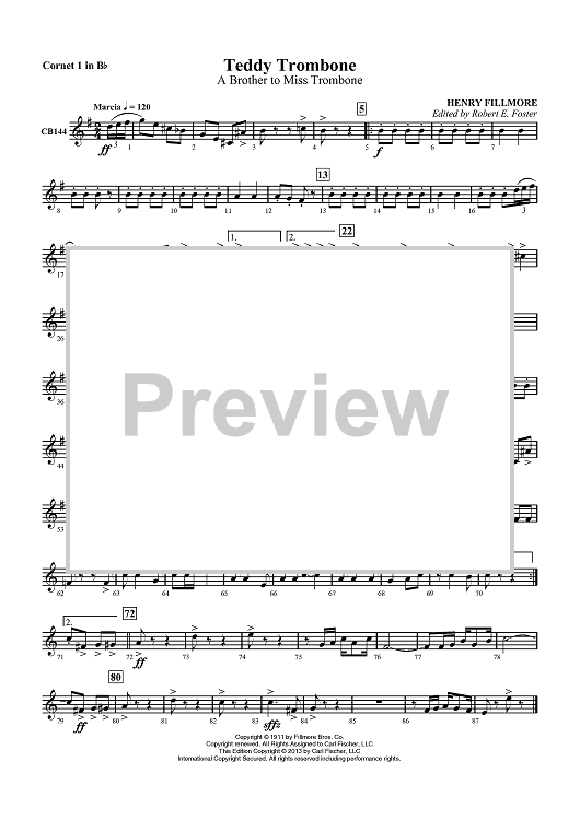 Digital Sheet Music for Teddy Trombone - A Brother to Miss Trombone - Cornet 1 in Bb by , Henry Fillmore, Robert E. Foster scored for Concert Band; id:435452