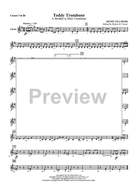 Digital Sheet Music for Teddy Trombone - A Brother to Miss Trombone - Cornet 3 in Bb by , Henry Fillmore, Robert E. Foster scored for Concert Band; id:435454