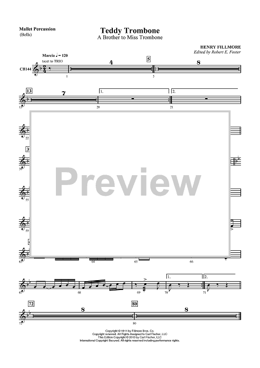 Digital Sheet Music for Teddy Trombone - A Brother to Miss Trombone - Mallet Percussion by , Henry Fillmore, Robert E. Foster scored for Concert Band; id:435465