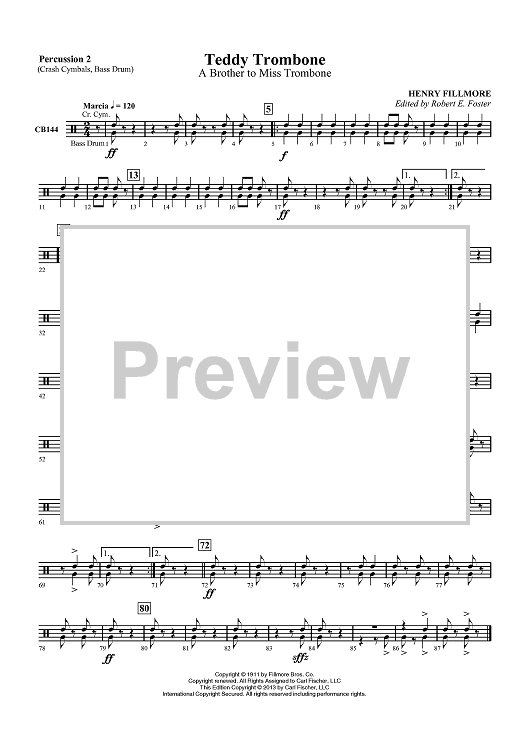 Digital Sheet Music for Teddy Trombone - A Brother to Miss Trombone - Percussion 2 by , Henry Fillmore, Robert E. Foster scored for Concert Band; id:435467