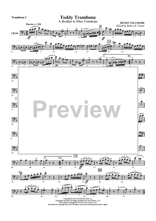 Digital Sheet Music for Teddy Trombone - A Brother to Miss Trombone - Trombone 2 by , Henry Fillmore, Robert E. Foster scored for Concert Band; id:435460