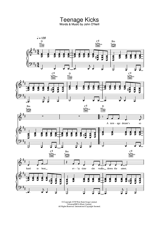 Digital Sheet Music for Teenage Kicks by The Undertones scored for Piano/Vocal/Chords; id:377560