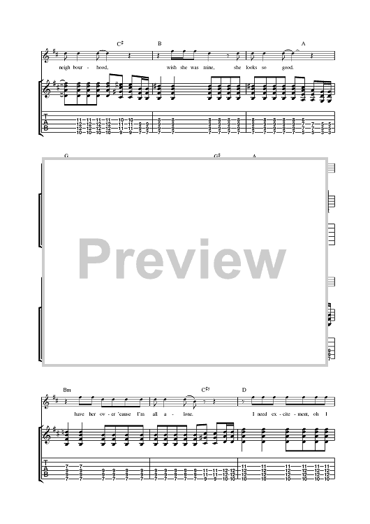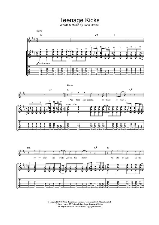 Digital Sheet Music for Teenage Kicks by The Undertones scored for Guitar Tab; id:377561