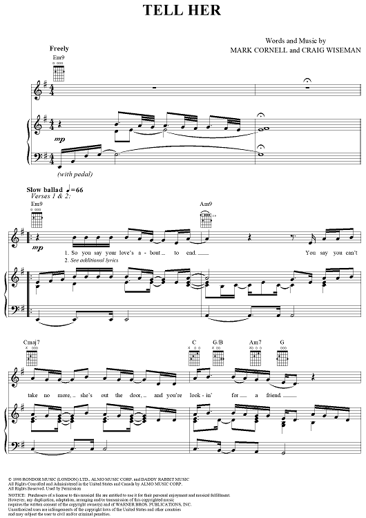 Digital Sheet Music for Tell Her by Lonestar, Craig Wiseman, Mark Cornell scored for Piano/Vocal/Chords; id:304284