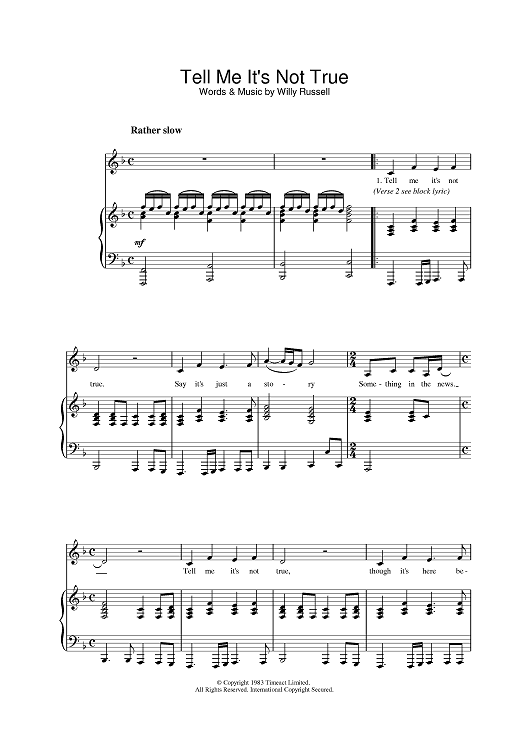 "Tell Me It's Not True" Sheet Music by Willy Russell