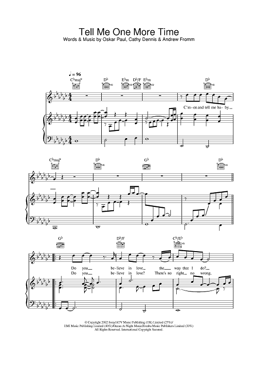 Digital Sheet Music for Tell Me One More Time by Cathy Dennis, Andrew Fromm, Gareth Gates, Oskar Paul scored for Piano/Vocal/Chords; id:377748