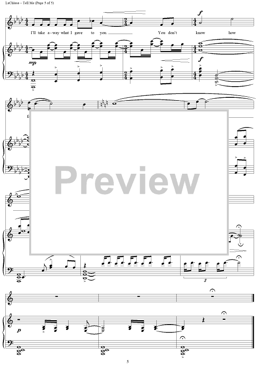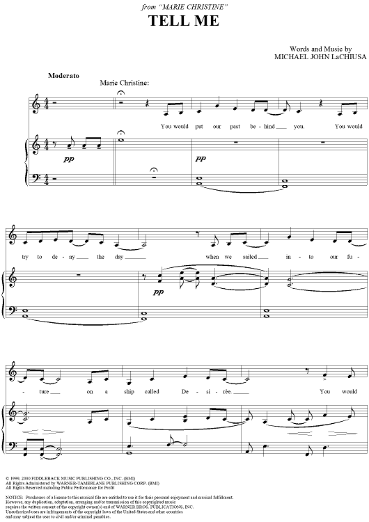 Digital Sheet Music for Tell Me by Michael John LaChiusa scored for Piano/Vocal; id:170128