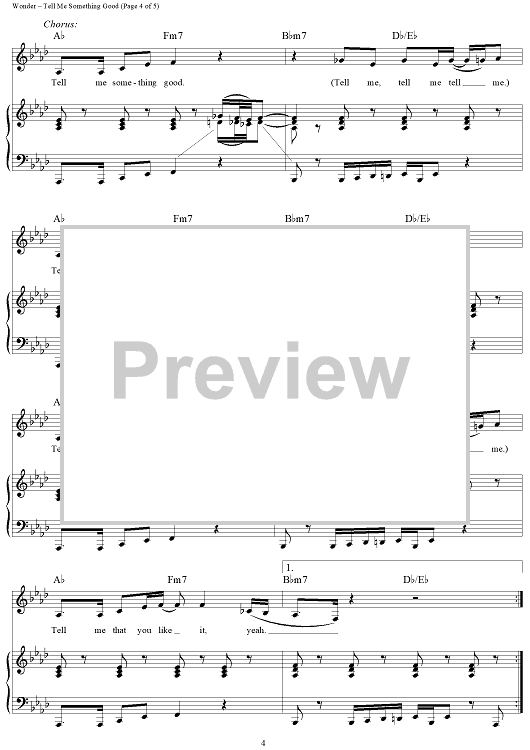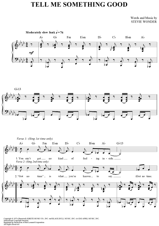 Digital Sheet Music for Tell Me Something Good by Stevie Wonder, Rufus scored for Piano/Vocal/Chords; id:456294