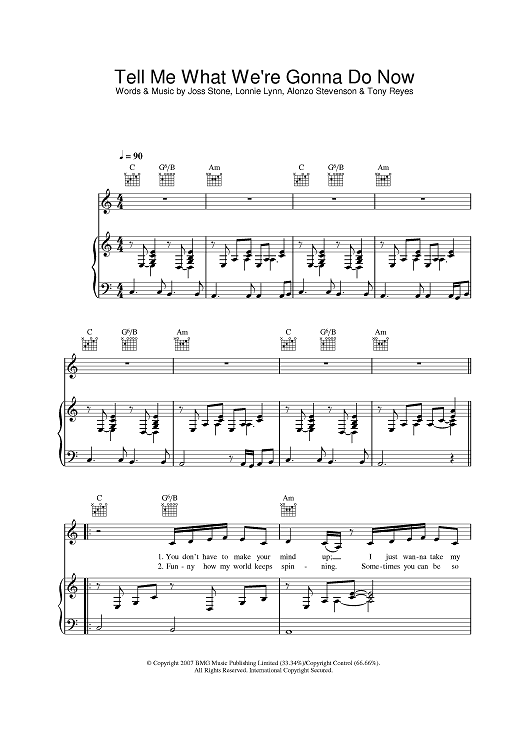 Digital Sheet Music for Tell Me What We're Gonna Do Now by Lonnie Lynn, Tony Reyes, Alonzo Stevenson, Joss Stone scored for Piano/Vocal/Chords; id:397130