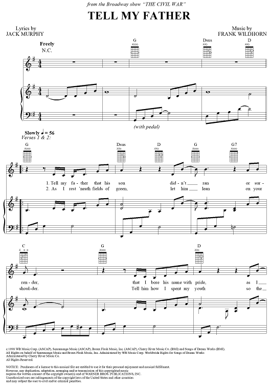 Digital Sheet Music for Tell My Father by Kevin Sharp, Frank Wildhorn, Jack Murphy scored for Piano/Vocal/Chords; id:263595