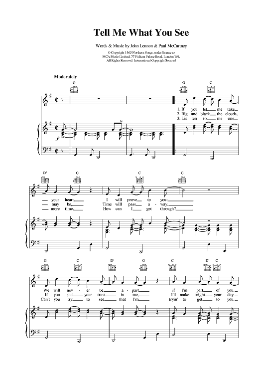 Digital Sheet Music for TellMe What You See by Paul McCartney, The Beatles, John Lennon scored for Piano/Vocal/Chords; id:376513