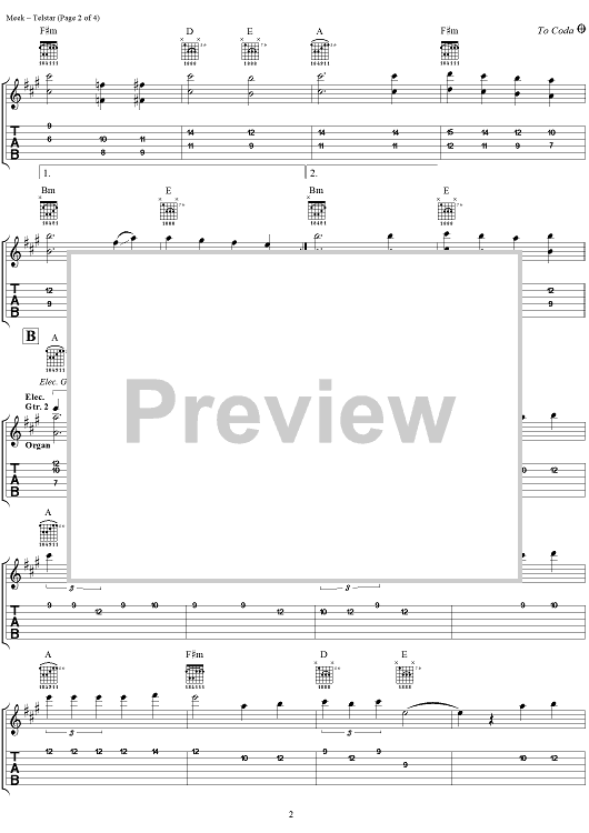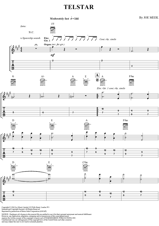 Digital Sheet Music for Telstar by The Tornadoes, Joe Meek scored for Guitar Tab; id:285277