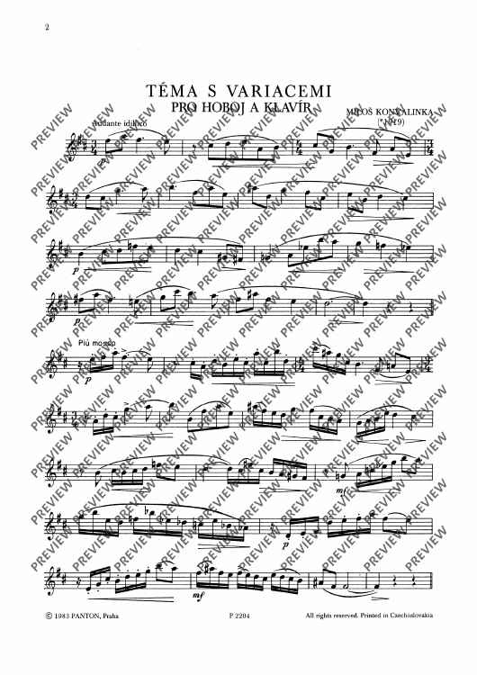 Digital Sheet Music for Tema con Variazioni by Milos Konvalinka scored for Oboe And Piano; id:489515