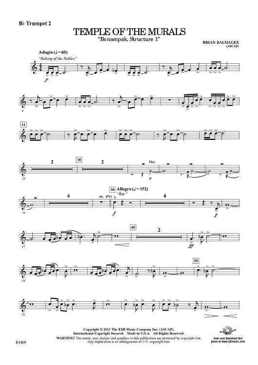 "Temple of the Murals - Bb Trumpet 2" Sheet Music by Brian Balmages