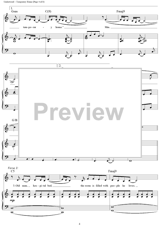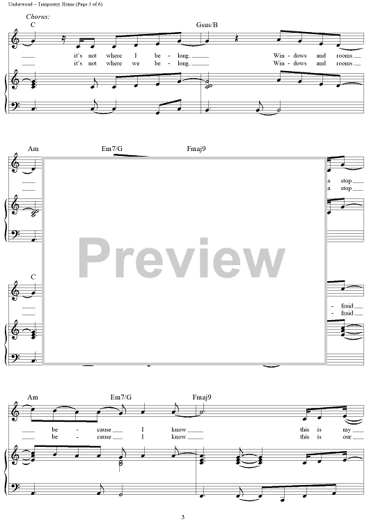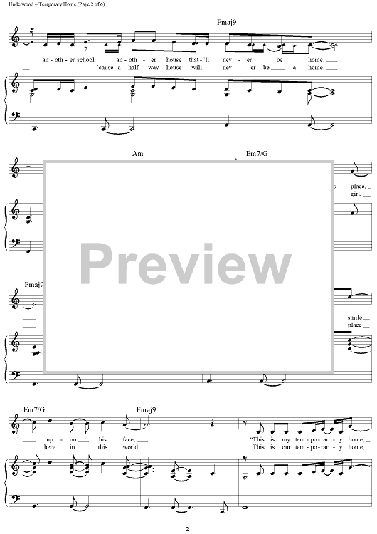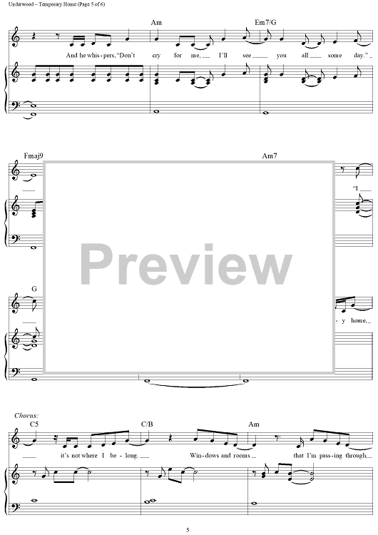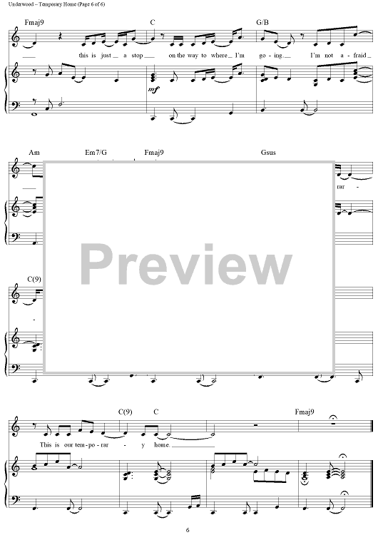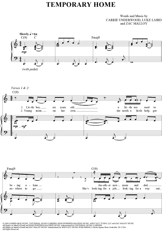 Digital Sheet Music for Temporary Home by Luke Laird, Zack Malloy, Carrie Underwood scored for Piano/Vocal/Chords; id:410859