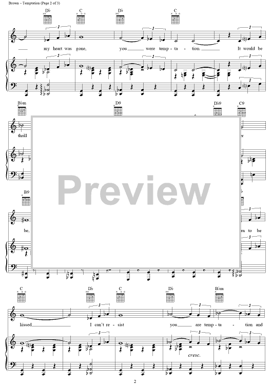 Digital Sheet Music for Temptation by Nacio Herb Brown, Arthur Freed scored for Piano/Vocal/Chords; id:124238