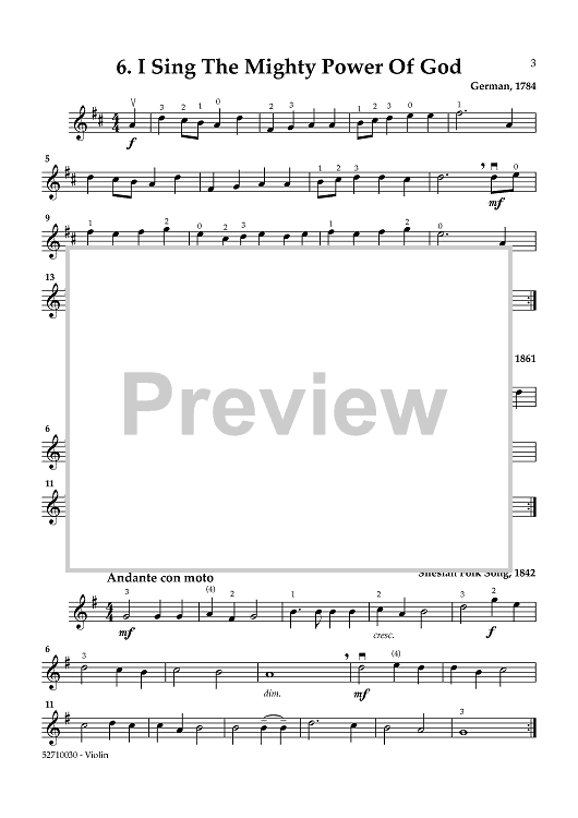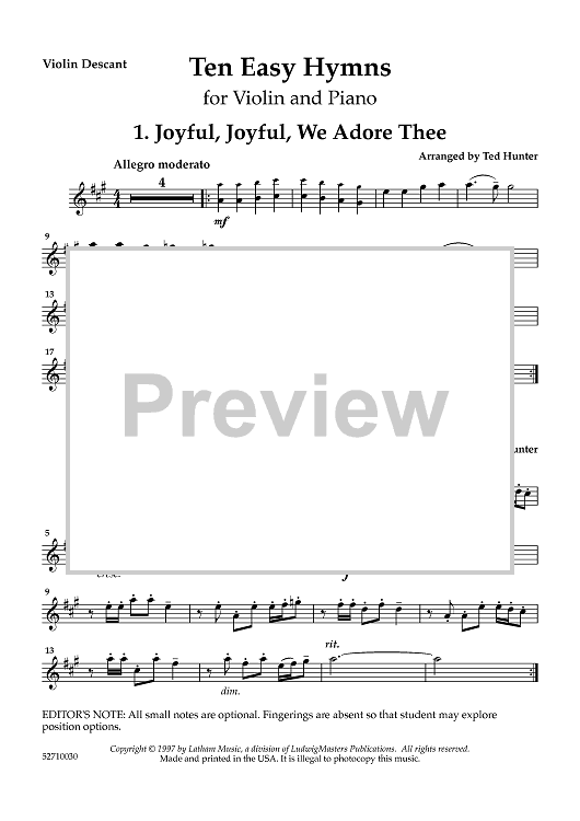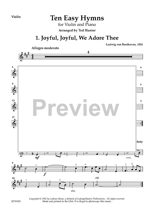 "Ten Easy Hymns for Violin and Piano" Sheet Music by Ludwig van Beethoven
