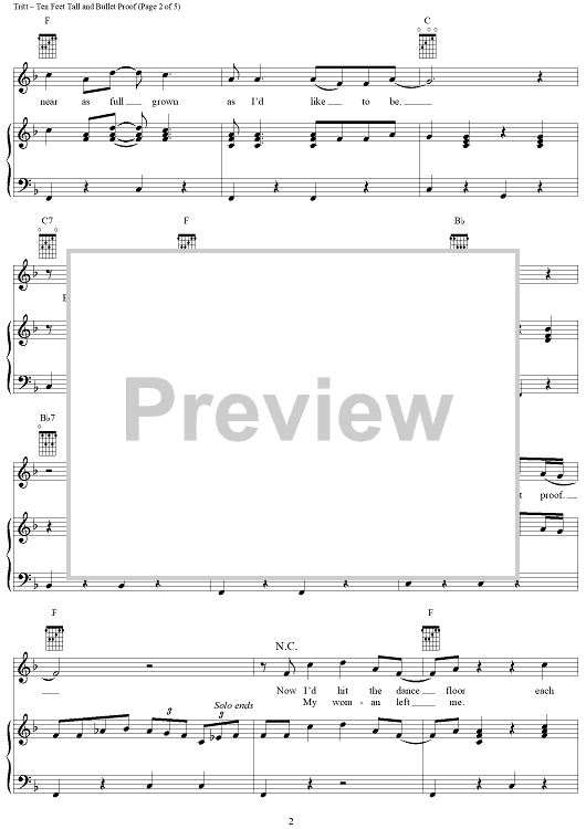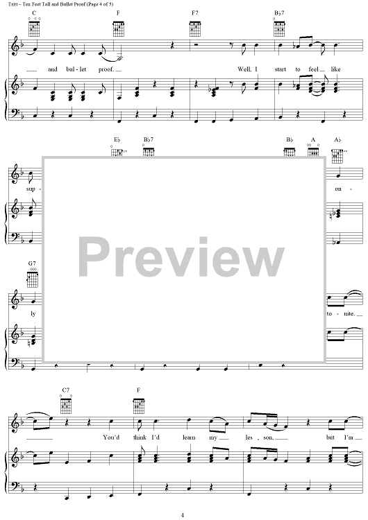 Digital Sheet Music for Ten Feet Tall and Bullet Proof by Travis Tritt scored for Piano/Vocal/Chords; id:370224